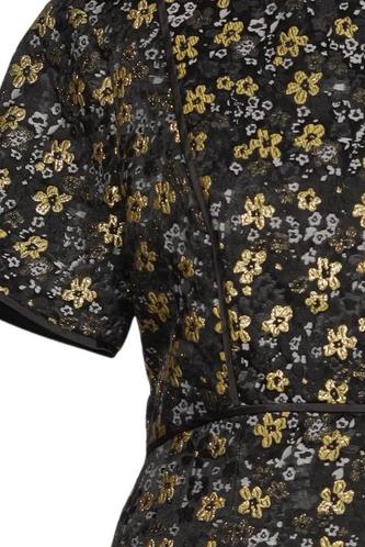 | Détails | Métallique, Manches courtes, Col rond, Fermeture éclair/boutons arrière, Fleuri |