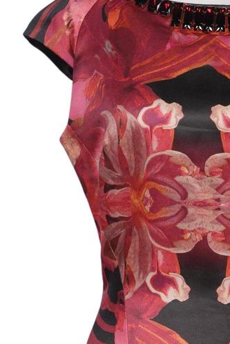 | Détails | Satin, Manches courtes, Col rond, Fermeture éclair/boutons arrière, Fleuri |