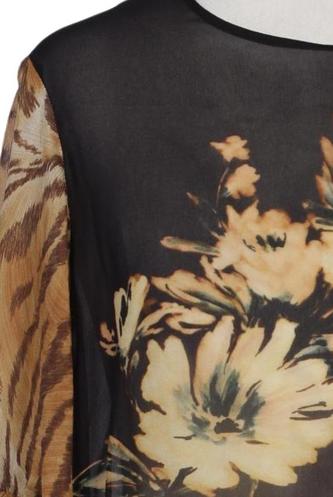 | Détails | Chiffon, Manches trois-quarts, Col rond, Sans fermeture, Fleuri |