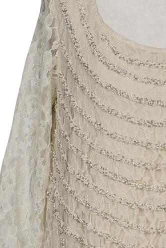| Détails | Dentelles, volants, Manches trois-quarts, Col rond |