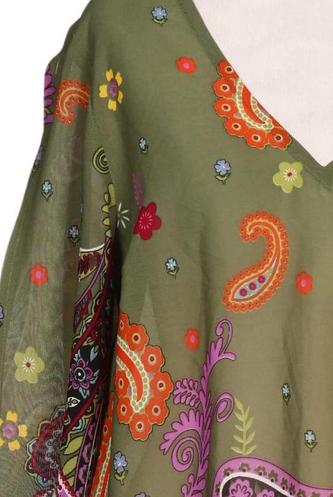 | Détails | Satin, volants, Manches longues, Encolure en V, Sans fermeture, Paisley |