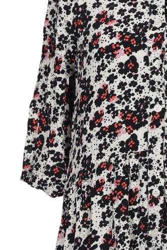| Détails | Manches courtes, Col rond, Patte de boutonnage avant, Fleuri |