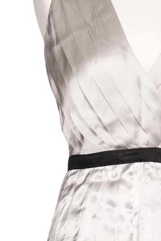 | Détails | Satin, Plissé, Métallique, Sans manches, Ceinture, Encolure en V, Fermeture éclair/boutons arrière, Uni |