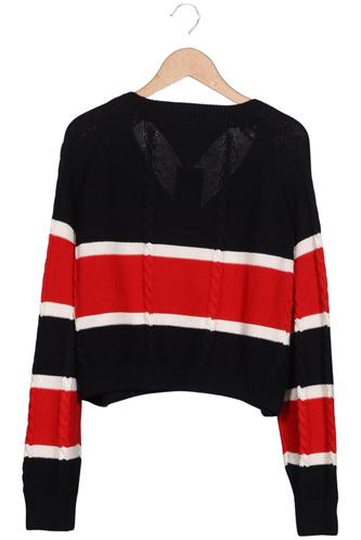 | Détails | Grosse maille, Manches longues, Encolure en V, Rayures |
