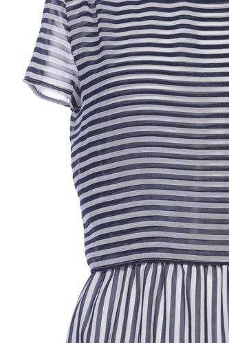 | Détails | Chiffon, Manches courtes, Ceinture, Col rond, Rayures |