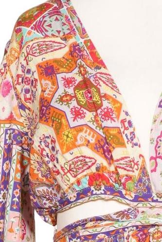 | Détails | Manches longues, Ceinture, Encolure en V, Ethnique |