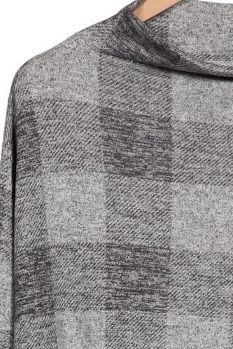 | Détails | Grosse maille, Manches longues, Col roulé, Carreaux |