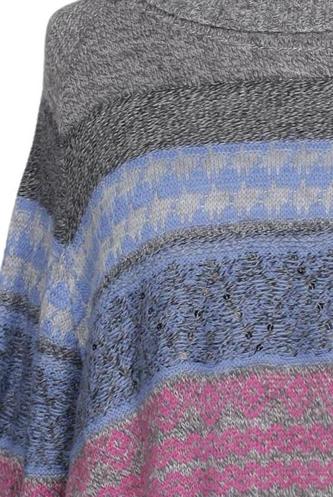 | Détails | Grosse maille, Manches longues, Col roulé, Rayures |