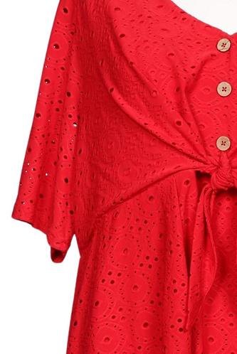 | Détails | Jersey, Broderie anglaise, Manches courtes, Encolure en V, À pois |