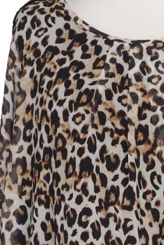 | Détails | Chiffon, Manches courtes, Col rond, Sans fermeture, Léopard |
