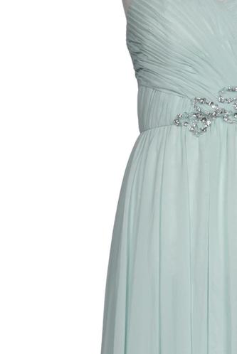 | Détails | Strass, Chiffon, Plissé, Sans manches, Ceinture, Encolure en V, Fermeture éclair/boutons arrière, Uni |