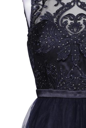 | Détails | Broderie, Tulle, Sans manches, Ceinture, Encolure en V, Fermeture éclair/boutons arrière, Fleuri |