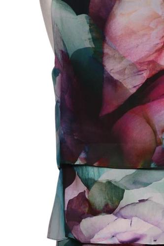 | Détails | volants, Chiffon, Sans manches, Col rond, Fermeture éclair/boutons arrière, Fleuri |