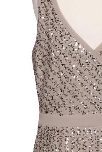 | Détails | Sequins, Chiffon, Métallique, Sans manches, Encolure en V, Fermeture éclair/boutons arrière |