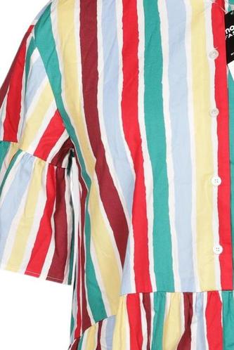 | Détails | volants, Manches courtes, Col rond, Patte de boutonnage avant, Rayures |