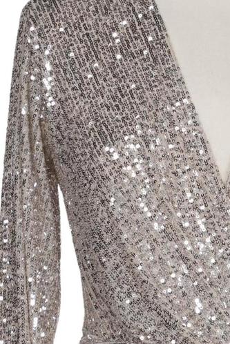 | Détails | Sequins, Métallique, Manches longues, Ceinture, Encolure en V, Uni |