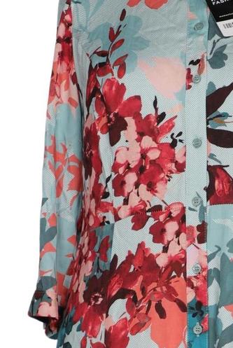 | Détails | Manches courtes, Col rond, Patte de boutonnage avant, Fleuri |