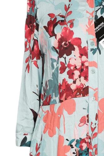 | Détails | Jersey, Manches trois-quarts, Col rond, Patte de boutonnage avant, Fleuri |