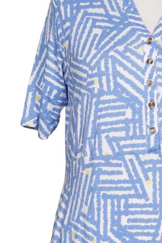 | Détails | Jersey, Manches courtes, Encolure en V, Patte de boutonnage avant, Imprimé à motifs |