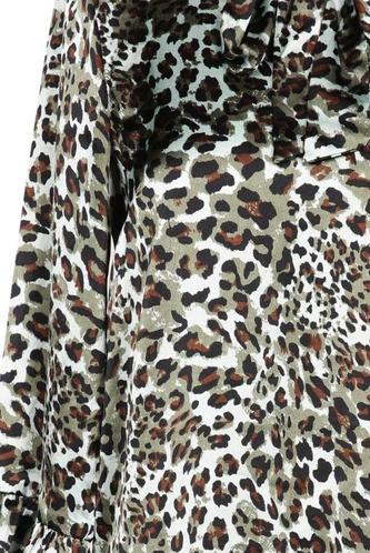 | Détails | Satin, volants, Manches trois-quarts, Col rond, Léopard |