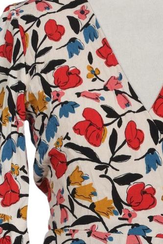 | Détails | Jersey, volants, Manches trois-quarts, Ceinture, Encolure en V, Fleuri |