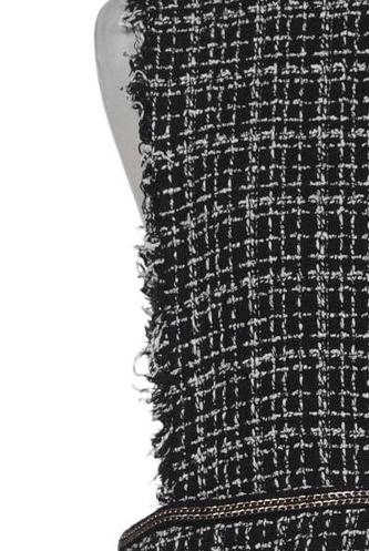 | Détails | Franges, Sans manches, Ceinture, Col rond, Fermeture éclair/boutons arrière, Pied-de-poule |