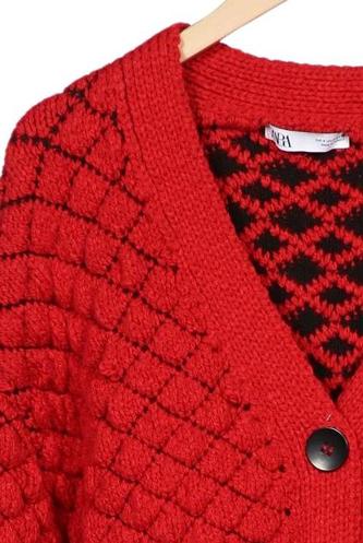 | Détails | Grosse maille, Manches longues, Patte de boutonnage avant, Argyle |