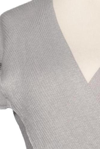 | Détails | Grosse maille, Manches courtes, Encolure en V, Uni |