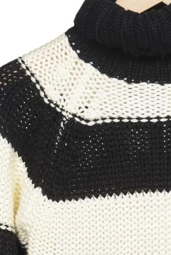 | Détails | Grosse maille, Manches longues, Col roulé, Rayures |