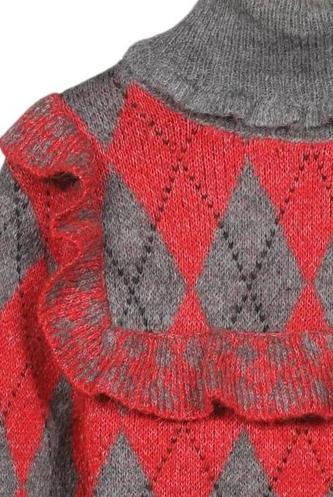 | Détails | volants, Grosse maille, Manches longues, Col roulé, Argyle |