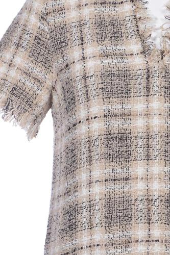 | Détails | Franges, Grosse maille, Manches courtes, Encolure en V, Carreaux |