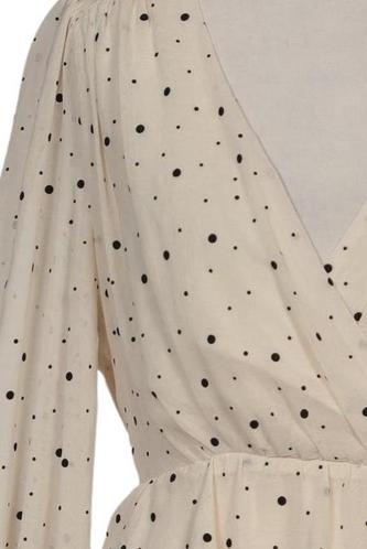 | Détails | Manches longues, Ceinture, Encolure en V, À pois |