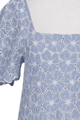 | Détails | Dentelles, Broderie anglaise, Manches courtes, Col rond, Fermeture éclair/boutons arrière, Fleuri |