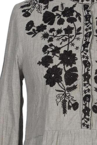 | Détails | Broderie, Manches longues, Col rond, Patte de boutonnage avant, Fleuri |