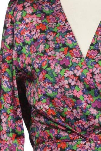 | Détails | Satin, Manches longues, Cache-cœur, Encolure en V, Fleuri |