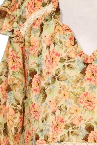 | Détails | volants, Manches trois-quarts, Encolure en V, Fleuri |