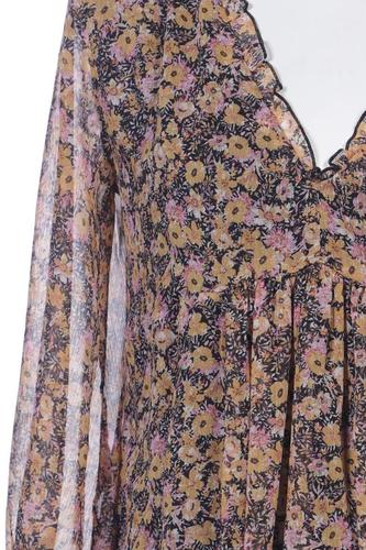 | Détails | volants, Chiffon, Manches trois-quarts, Encolure en V, Fleuri |