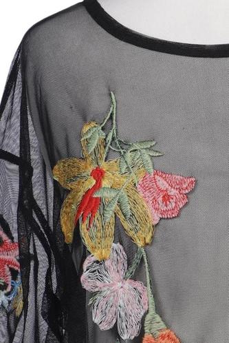 | Détails | Broderie, Col rond, Fleuri |
