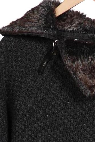 | Détails | Fausse fourrure, Grosse maille, Manches longues, Encolure en V, Uni |