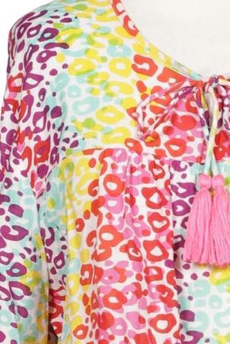 | Détails | Franges, Chiffon, Manches longues, Encolure en V, Sans fermeture, Léopard |