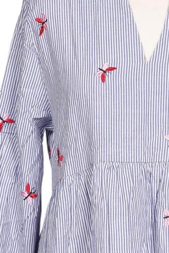 | Détails | Broderie, Manches longues, Encolure en V, Imprimé à motifs, Rayures |