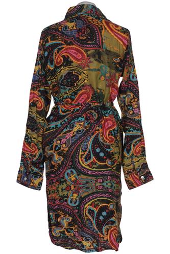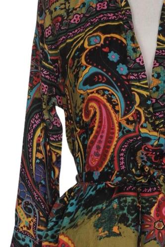 | Détails | Satin, Manches longues, Ceinture, Encolure en V, Patte de boutonnage avant, Paisley |