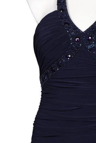 | Détails | Strass, Jersey, Plissé, Sans manches, Encolure en V, Fermeture éclair/boutons arrière, Uni |