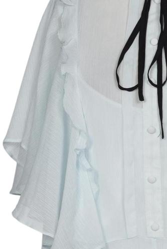 | Détails | volants, Chiffon, Manches courtes, Encolure en V, Fermeture éclair/boutons arrière, Uni |