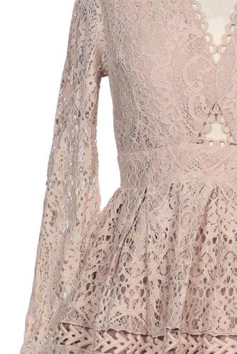 | Détails | Dentelles, Manches longues, Encolure en V, Fermeture éclair/boutons arrière, Fleuri |