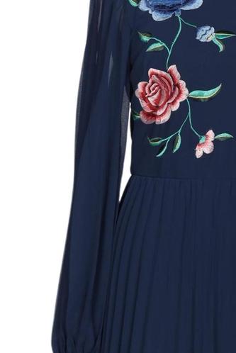 | Détails | Broderie, Chiffon, Plissé, Manches longues, Col rond, Fermeture éclair/boutons arrière, Fleuri |