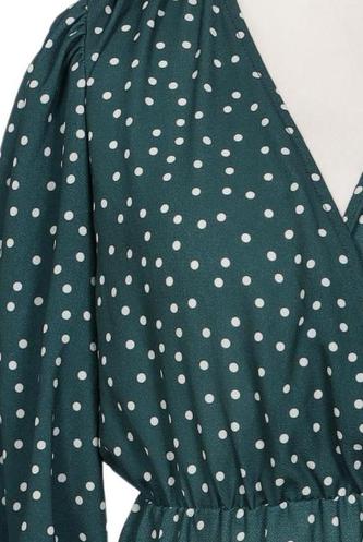 | Détails | Jersey, volants, Manches trois-quarts, Cache-cœur, Encolure en V, Élastique/cordon de serrage, À pois |