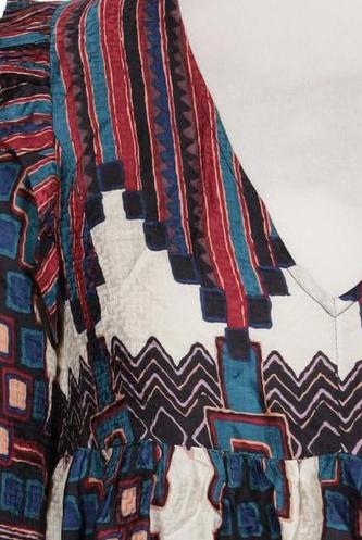| Détails | Satin, volants, Manches trois-quarts, Encolure en V, Sans fermeture, Ethnique |