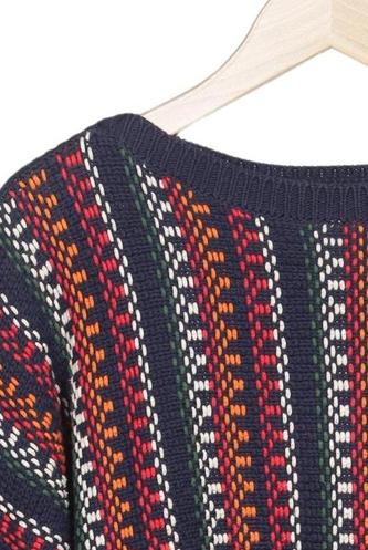 | Détails | Grosse maille, Manches longues, Col rond, Rayures |