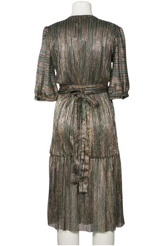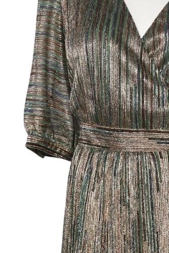 | Détails | Satin, volants, Métallique, Manches courtes, Ceinture, Cache-cœur, Encolure en V, Rayures |